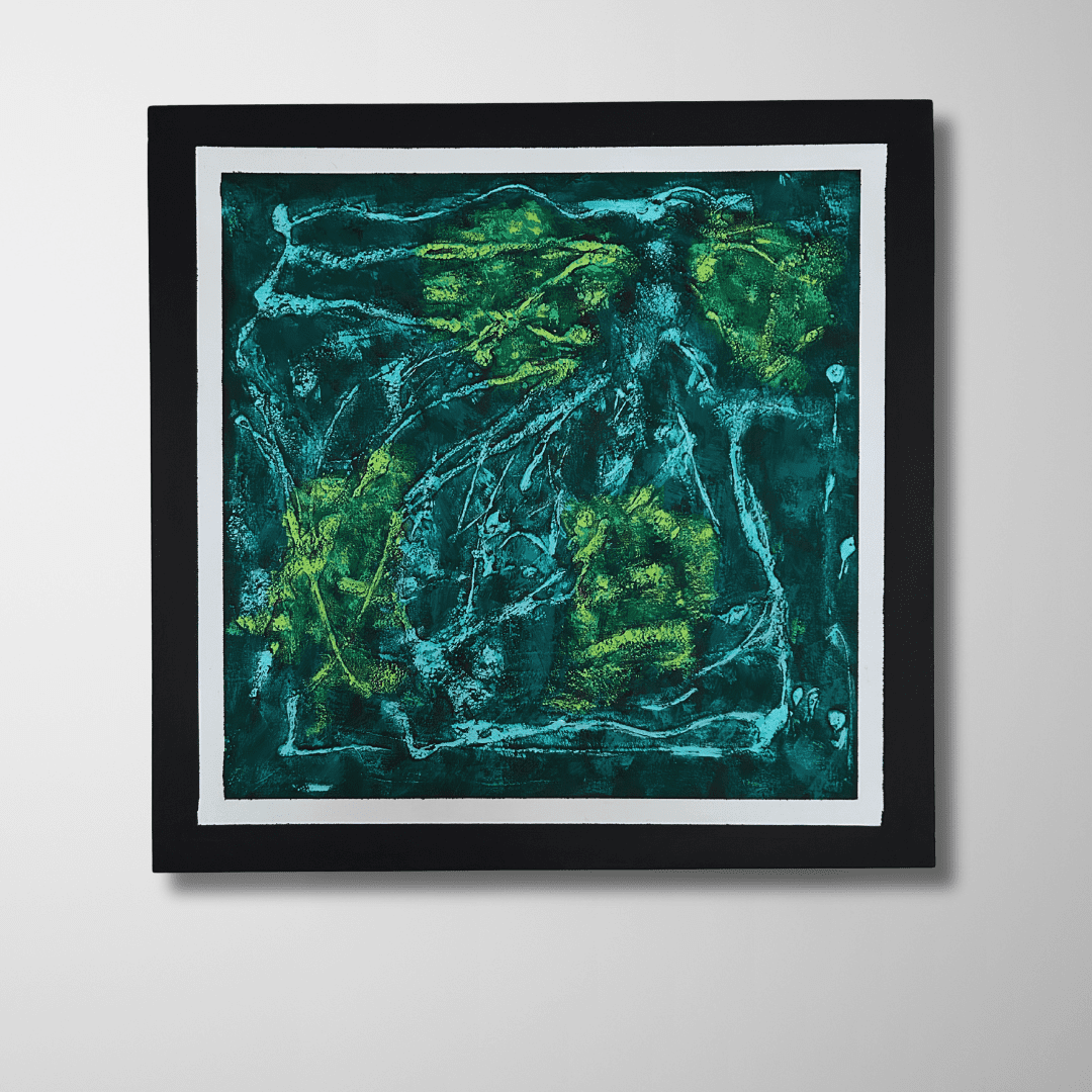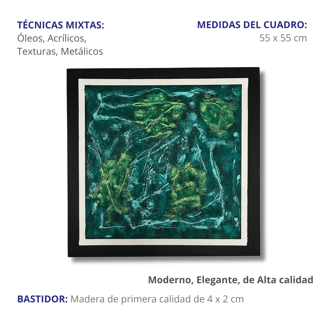 los acrílicos y una innovadora danza de texturas, «Abismo Esmeralda» es un estudio de la profundidad y la